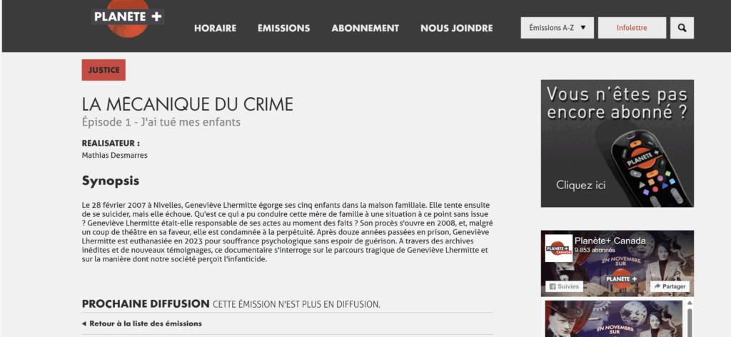 Catégorie : Société – Sous catégorie : True Crime